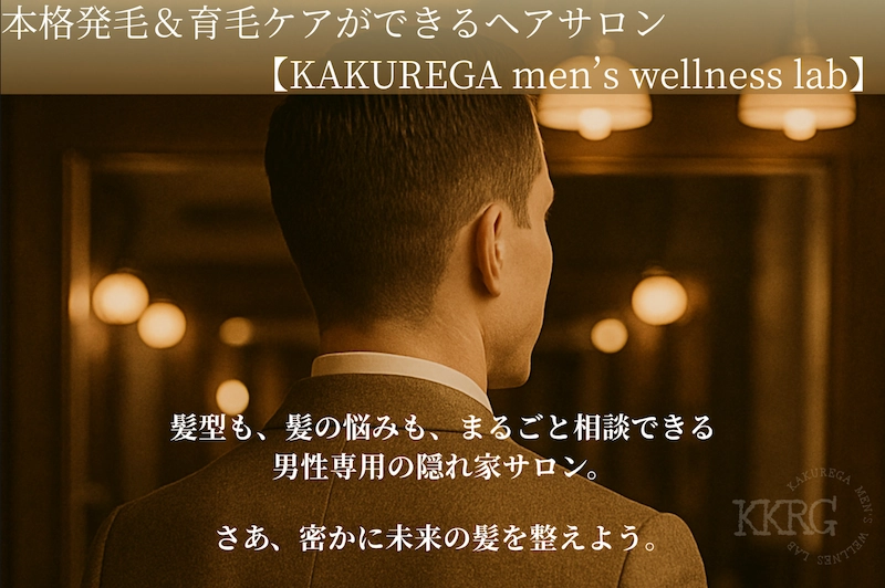 KAKUREGAは、"最先端の発毛技術"とプロの理容師による"似合わせカット"を組み合わせた唯一無二のメンズ専門サロンです。